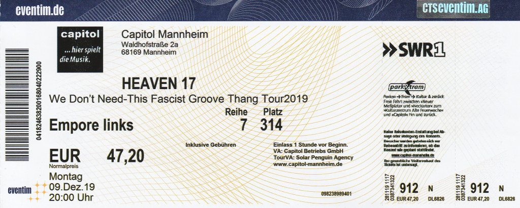 Update: By the time I had completed this post the Covid-19 pandemic caused many shows to be canceled or rescheduled, including the aforementioned Frankfurt show in April. If you consider going, there are still possibilities to see a show in Germany, here is a link to the 2022 live dates: Live Dates – Heaven 17